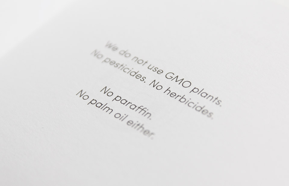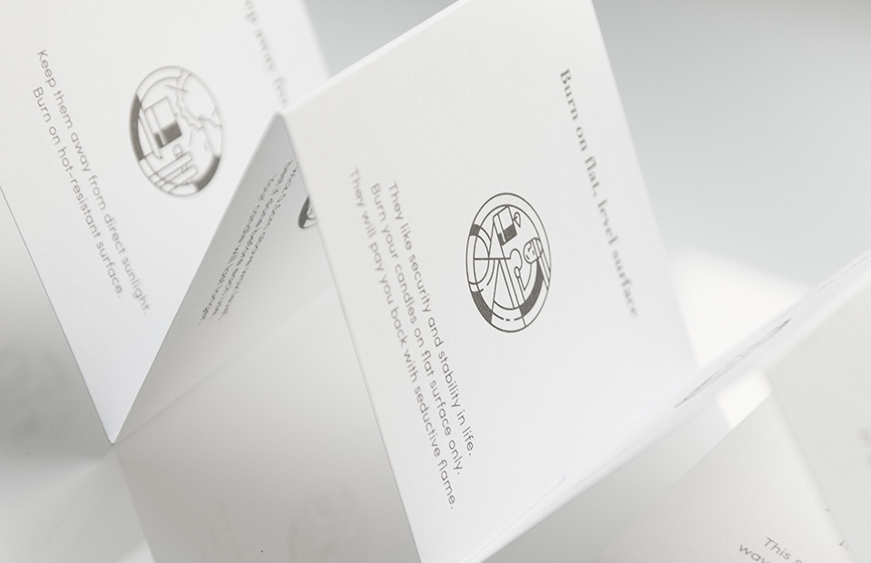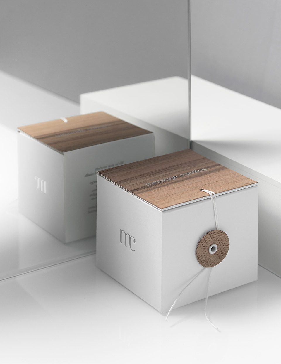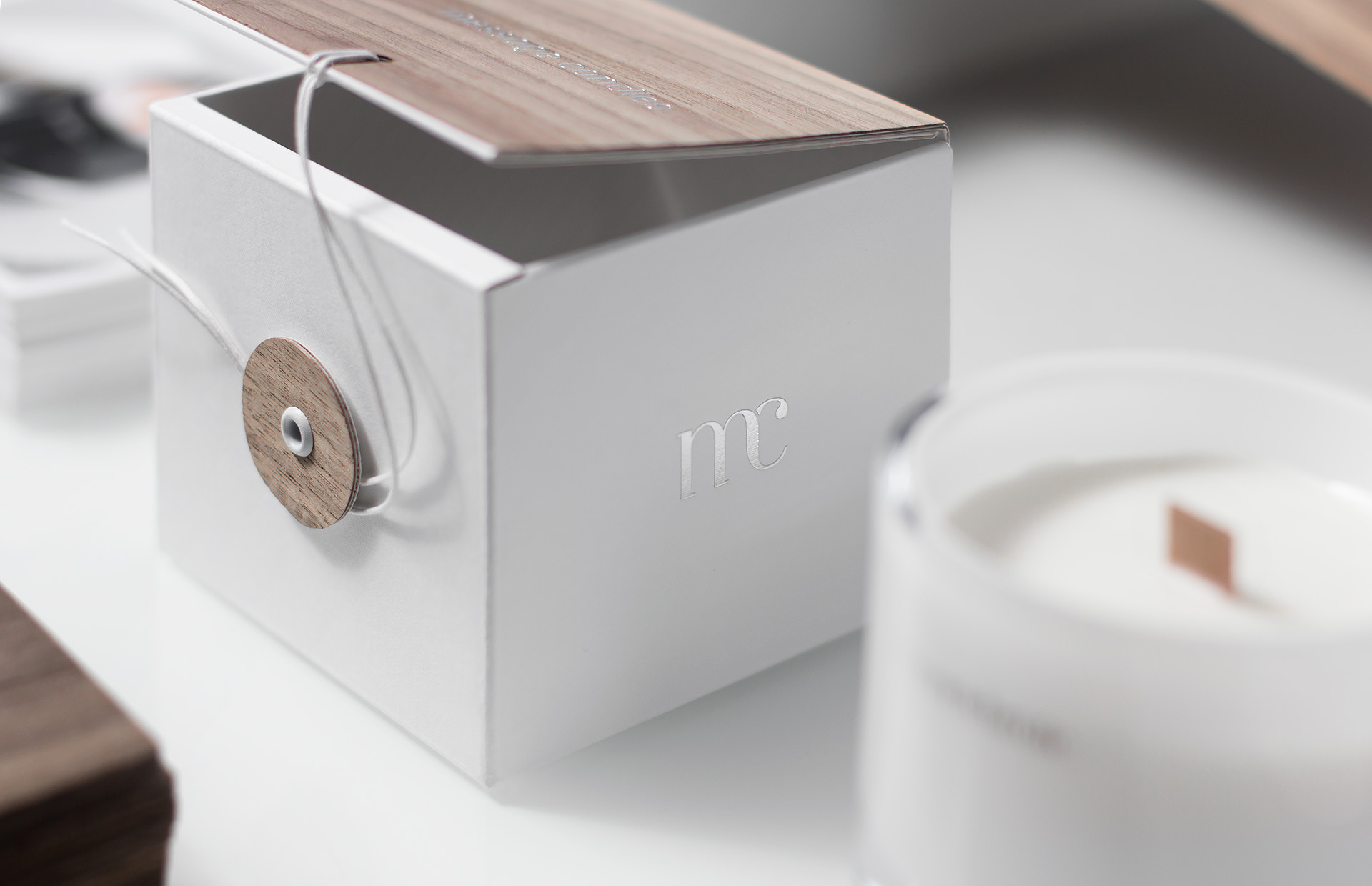 Inspired by the candle, its amazing aesthetics and a tiny detail – a wooden wick, we decided to use the same real wood across the identity design including the packaging.