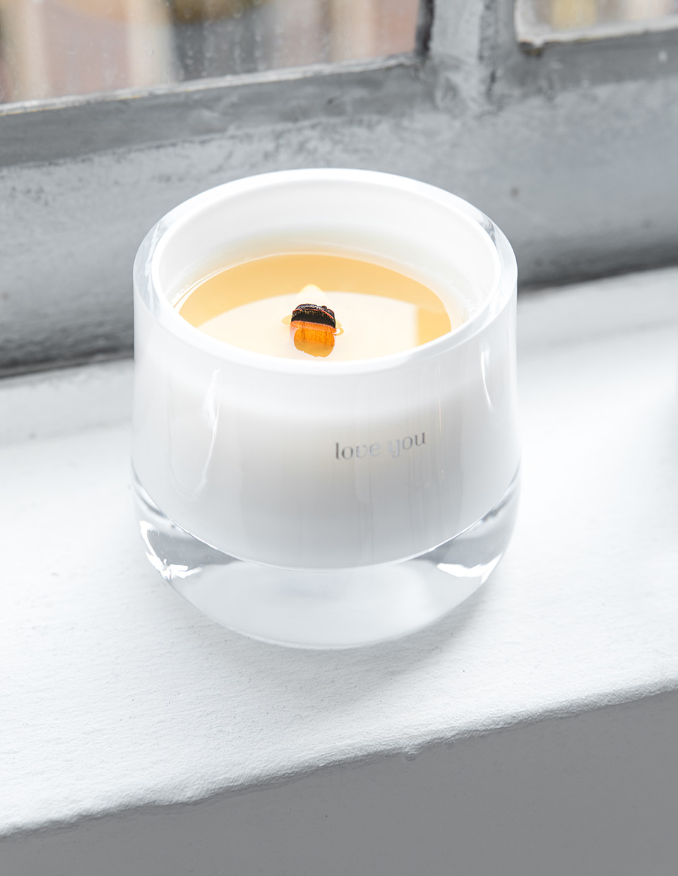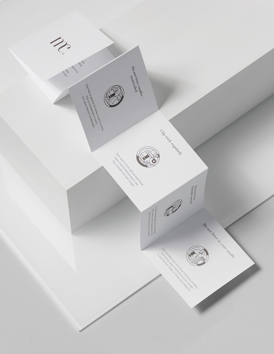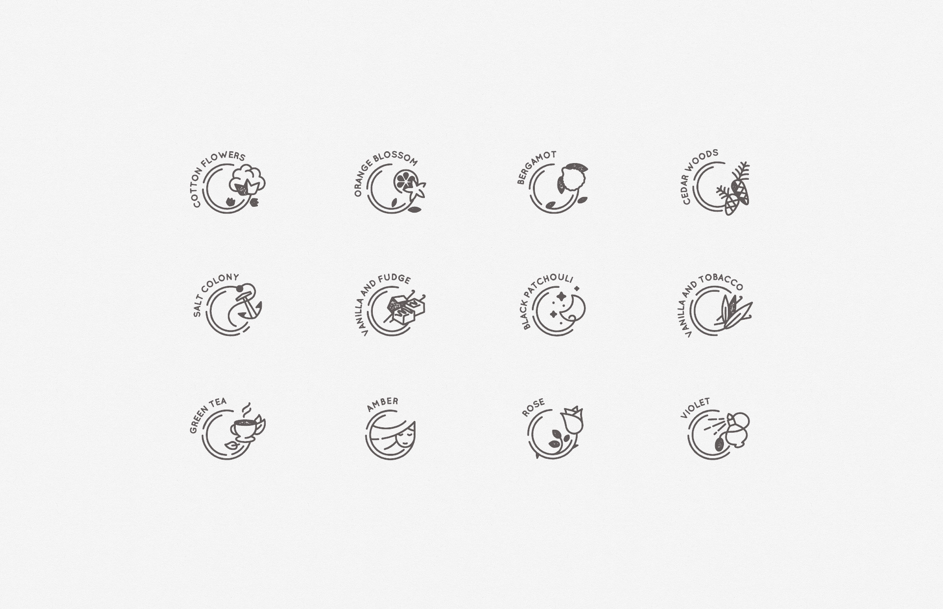 Based on an elegant wordmark accompanied by monogram and custom tailored typography used for messages applied on candle glass, we achieved a luxury, contemporary look, fitting the product style.