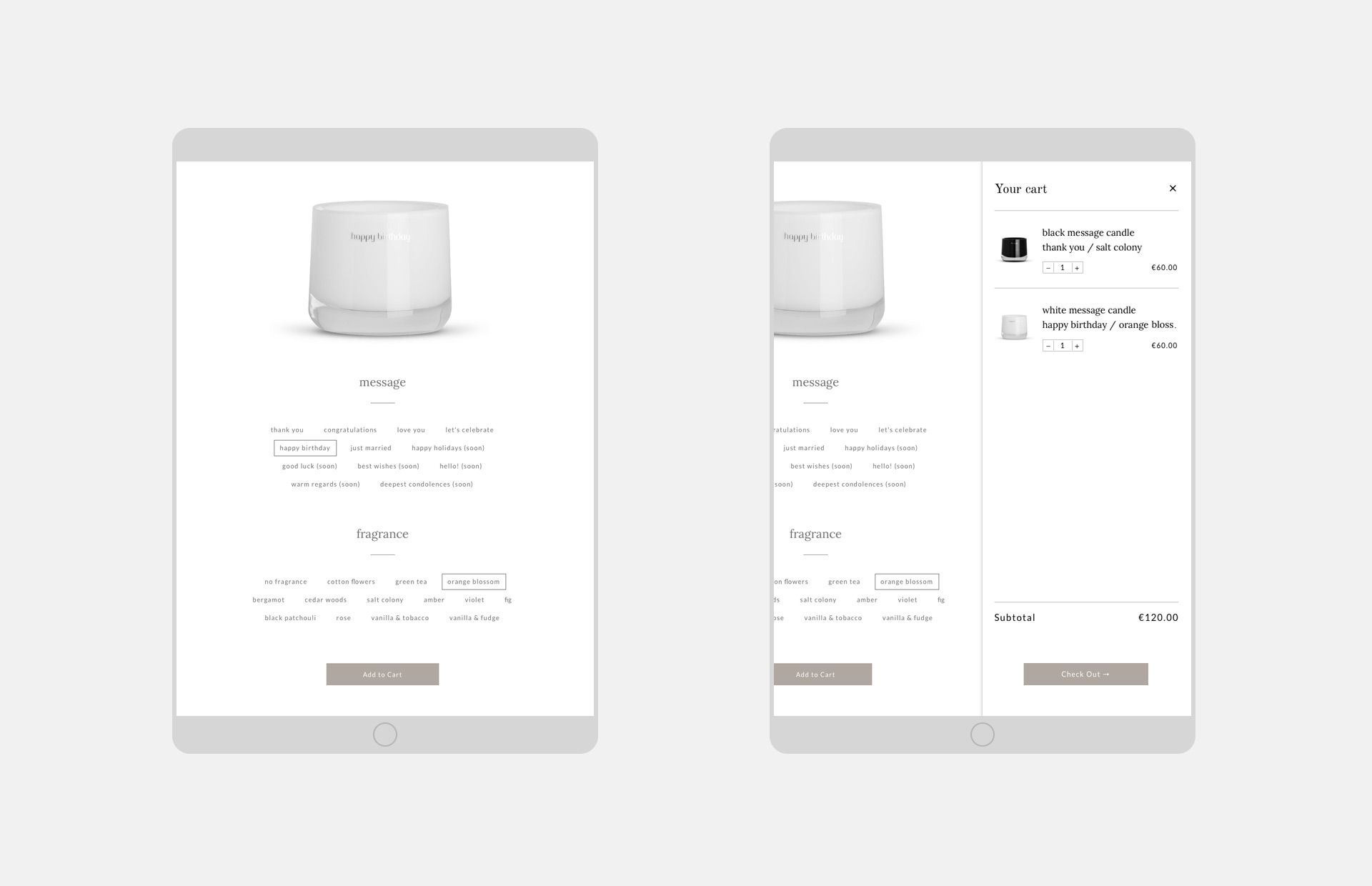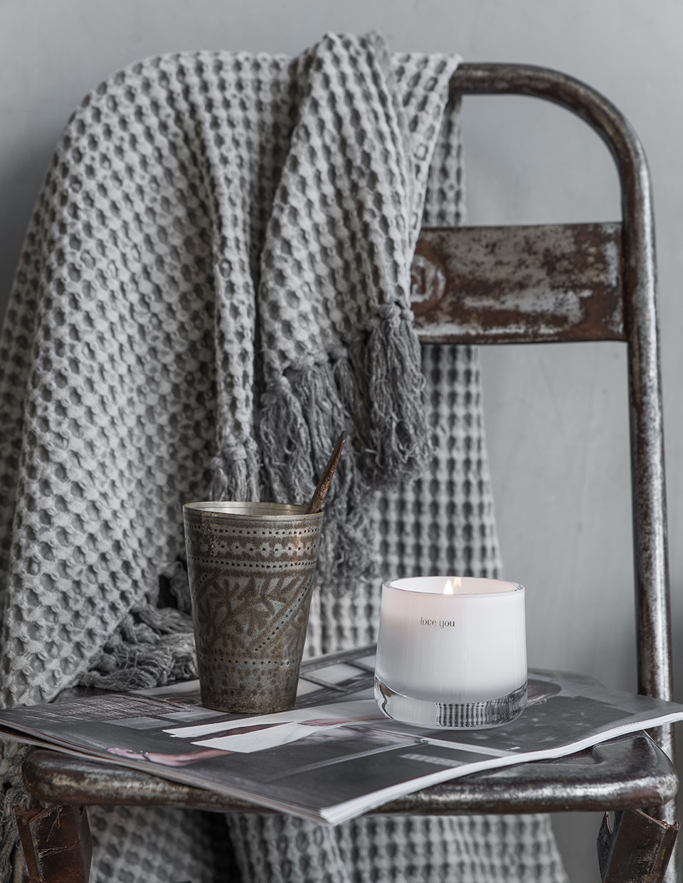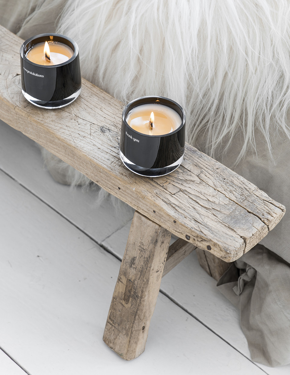Based on an elegant wordmark accompanied by monogram and custom tailored typography used for messages applied on candle glass, we achieved a luxury, contemporary look, fitting the product style.
