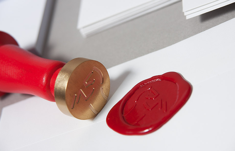The idea was to keep it as clean and simple as possible, so that the logo was the main point of identity. We made the wax stamp to seal envelopes, embossing the symbol.