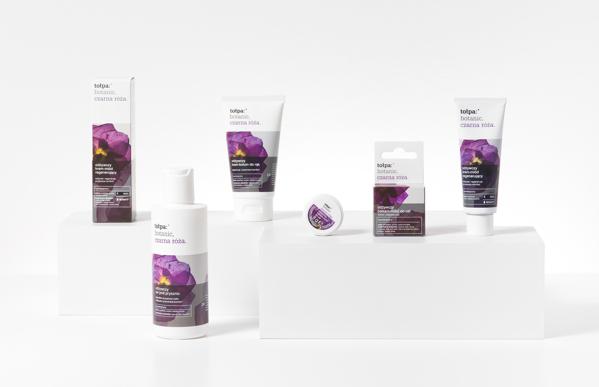 Within many months of our cooperation with tołpa, we have developed more than 100 different packages and labels for their cosmetics.