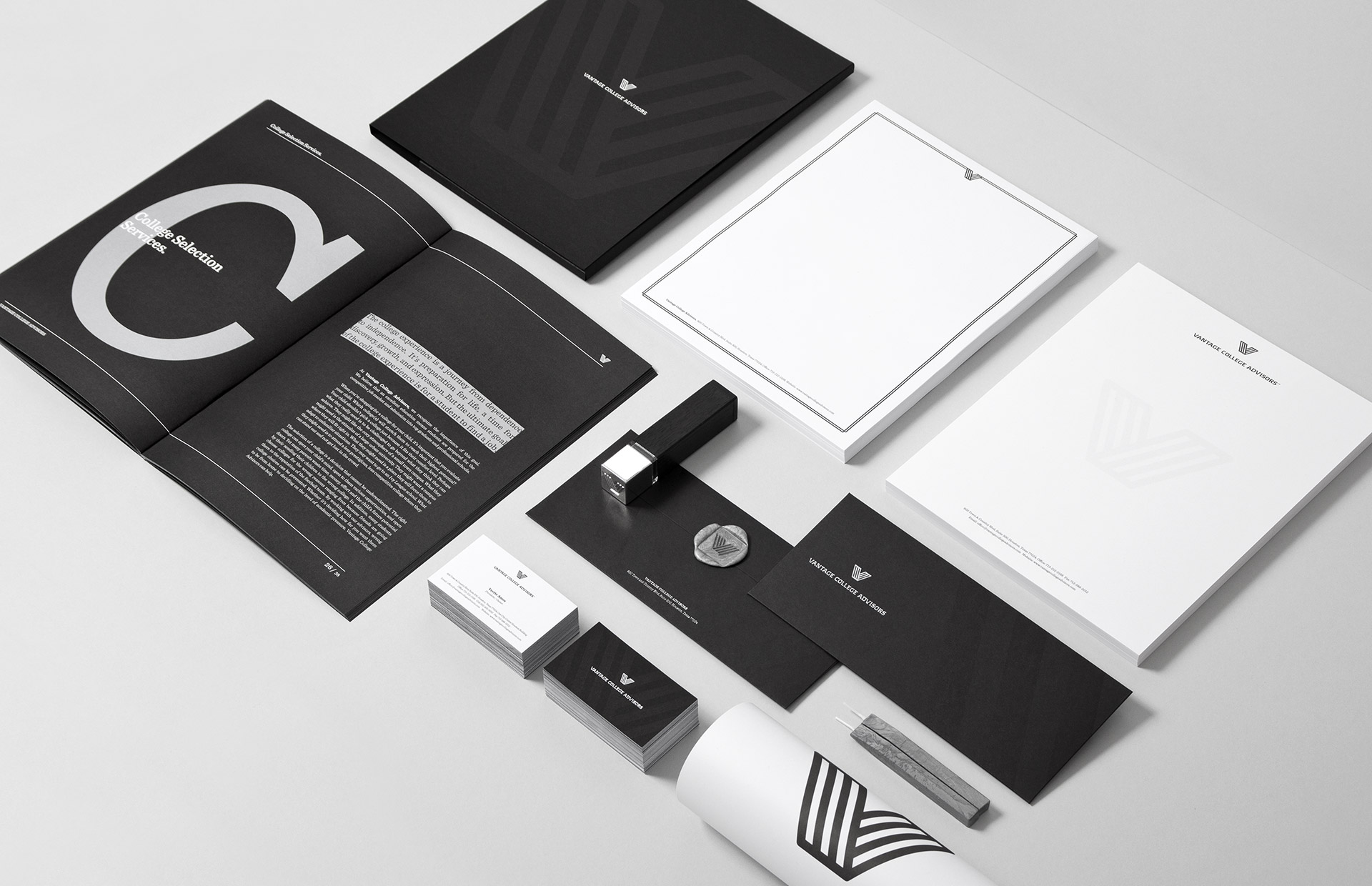 We have helped VCA with the design of prestigious, aesthetic corporate identity. We began with the logo design. Simple & strong monochrome V symbol referring to the most important word in the company name (Vantage), was complemented by a individually tailored typography.